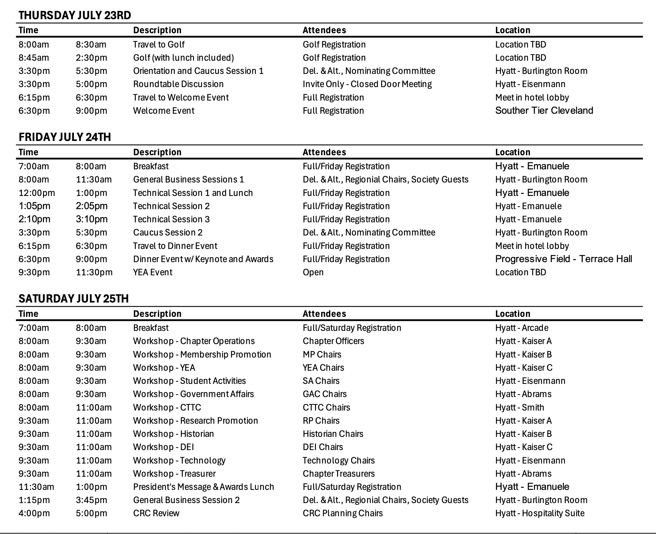 When: July 23-25th, 2026 (Thursday thru Saturday)